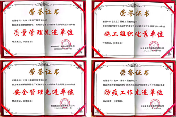 攀鋼釩煉鐵廠貯煤筒倉建設項目,在工程建設過程中面對國家疫情防控緊張、施工現場地質情況復雜、工期緊、施工條件差等不利因素,項目部迎難而上、精心部署扭轉了施工被動局勢。在管理和服務上充分發揮宏源中科“以客戶為中心”的管理理念,受到了業主的肯定及表揚,并授予了各項管理榮譽證書,為后期更多的合作奠定基礎。